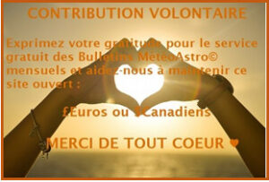 Merci de soutenir mes Bulletins MétéoAstro© et Express© gratuits, ainsi que mon site Internet : Contribution volontaire